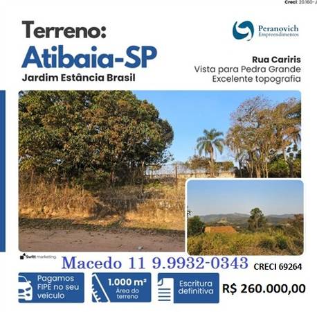 *Atibaia, Bairro de Chácaras, 1.000m²*!
