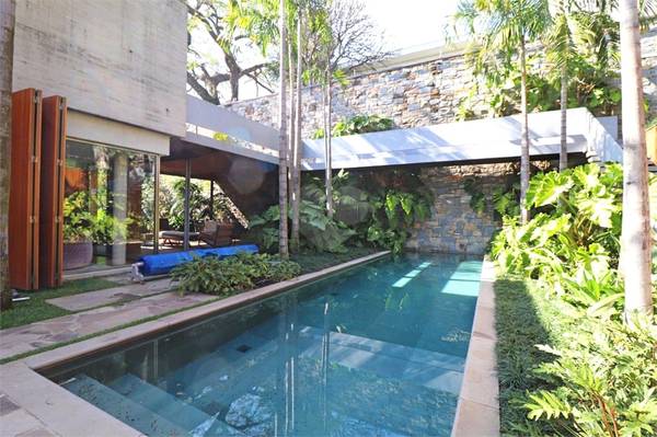 Project by Marcio Kogan, construction by Fairbanks Engenharia, large garden by Landscape Architect Renata Tilli. Inverted construction, the suitess on the ground floor open onto the garden, an access ramp leads to the social area with hollow brick wall designed exclusively for the house. Social area occupies the first floor and a sliding door allows the kitchen to integrate with the dining room. Another sliding door opens the room completely to a deck connected by a walkway to the upper garden. Solar and gas pool, fitness center, studio, guest suite, underground garage, The street is served by 24/7 professional security service. Nearby the main financial centres such as Avenida Faria Lima, Avenida Berrini, Avenida Naçôes Unidas and several shopping centres and parks such as Parque Villa Lobos and international schools.